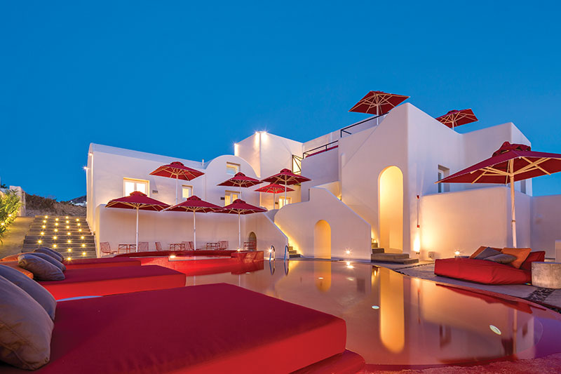 Μια εξοχική κατοικία σε ένα όμορφο χωριό της Σαντορίνης, τον Πύργο, μεταμορφώθηκε σε ένα ξενοδοχείο με ιδιαίτερο χαρακτήρα, η προνομιακή θέση του οποίου προσφέρει πανοραμική θέα του νησιού. Η πρόκληση της ανάδειξης ενός σπιτιού σε ένα ελκυστικό τουριστικό προϊόν οδήγησε την Αλίνα Τσολακάκη της Aqua Vista Hotels στη σύλληψη ενός θεματικού ξενοδοχείου με εκκεντρικά στοιχεία.