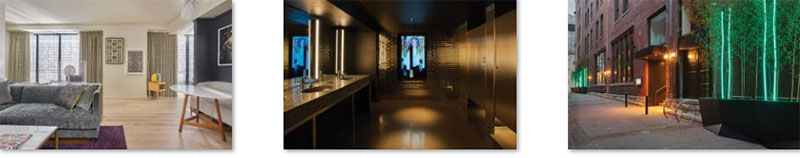 Τα φινιρίσματα και η παλέτα των υλικών γιορτάζουν τη ζωντανή κουλτούρα της μουσικής και των τεχνών της πόλης, μέσω της χρήσης πλούσιων, βαθιών και πολυτελών χρωμάτων και πολύ γυαλιστερών υλικών και μοτίβων.