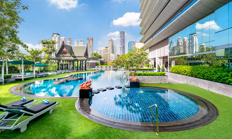 Εκτός από την ανακαίνιση των κοινόχρηστων χώρων και των 374 πολυτελών δωματίων, ο μετασχηματισμός του Athenee Hotel περιλαμβάνει έναν πρόσφατα ανασχεδιασμένο χώρο πισίνας σε σχήμα λιμνοθάλασσας. Με τη συγχώνευση της υπαίθριας πισίνας με έναν εσωτερικό χώρο, εμπνευσμένο από το διαχρονικό στυλ του Kandhavas Palace, οι σχεδιαστές δημιούργησαν ένα ξεχωριστό Ταϊλανδέζικο χώρο για αναψυχή και χαλάρωση.