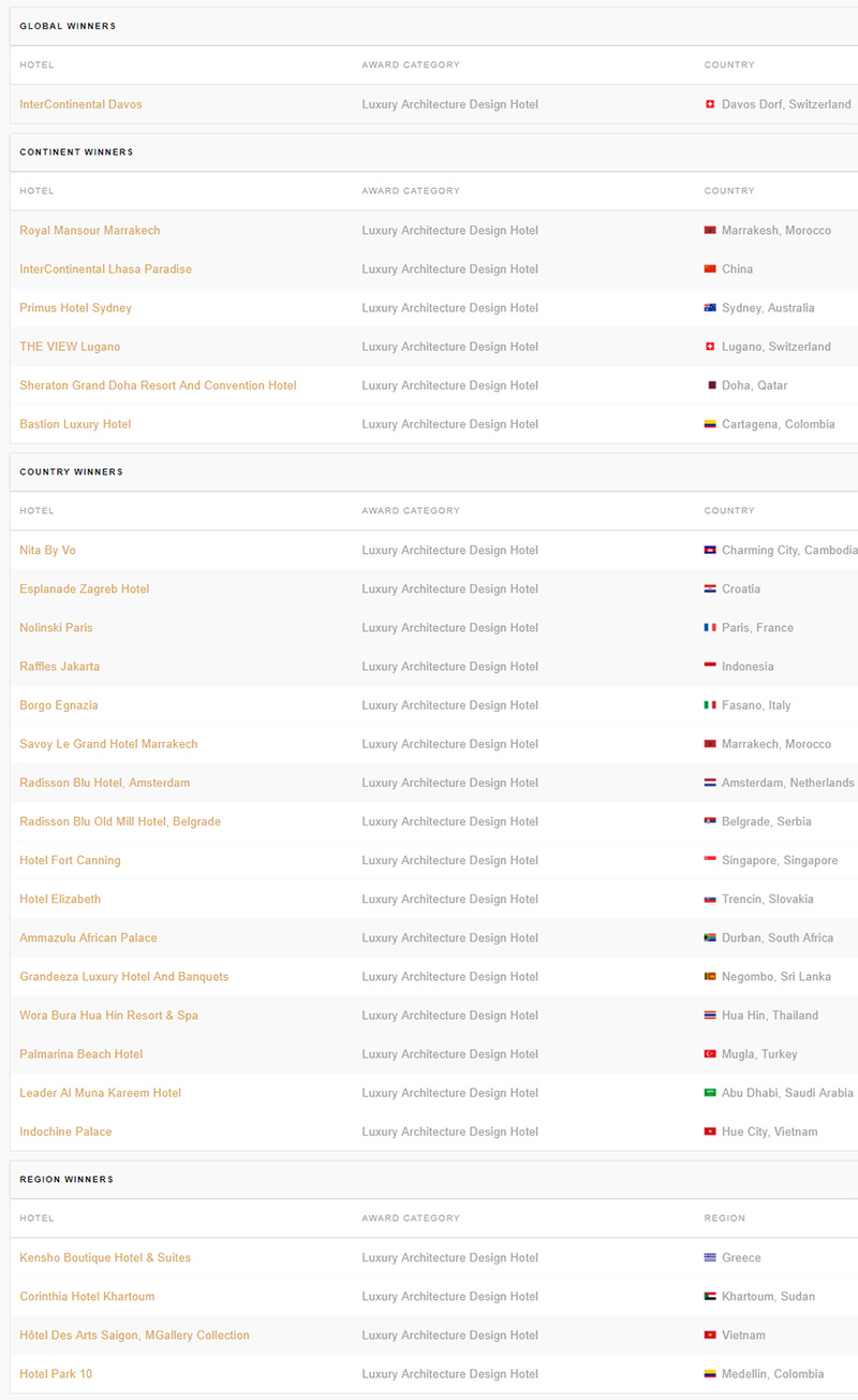 Ποια ξενοδοχεία διακρίθηκαν στα World Luxury Hotel Awards 2017 για την Αρχιτεκτονική και το Design τους;