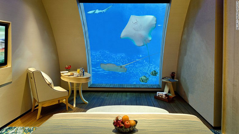 Δεν είναι πλωτό, αλλά ημι-βυθισμένο στην μια πλευρά του Ενυδρείου της Σιγκαπούρης, που διεκδικεί τον τίτλο του μεγαλύτερου ενυδρείου στον κόσμο.