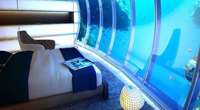 Το υποθαλάσσιο κομμάτι του περιλαμβάνει το υπνοδωμάτιο και ένα εσωτερικό τζακούζι, αλλά και έναν γυάλινο τοίχο που βλέπει μέσα στο ενυδρείο. Οι τουρίστες μπορούν απλά να ξαπλώσουν στο κρεβάτι σου και να απολαύσουν το βυθό.