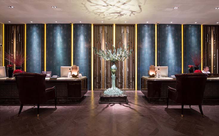 Σε στυλ Art Deco, ο χώρος συνδυάζει γυαλί, ατσάλι, χρυσό και μάρμαρο, ενώ το δάπεδο είναι κατασκευασμένο από νεφρίτη. Τα έπιπλα είναι βαριά και πολυτελή, αποκλειστικά φτιαγμένα για το ξενοδοχείο.