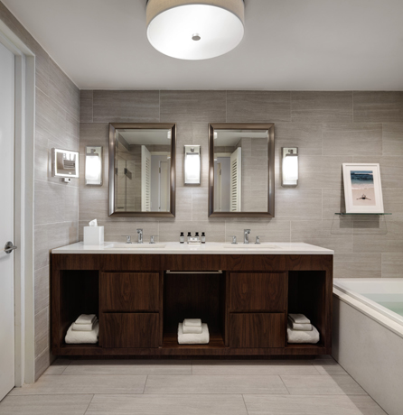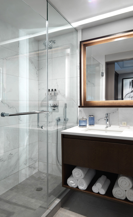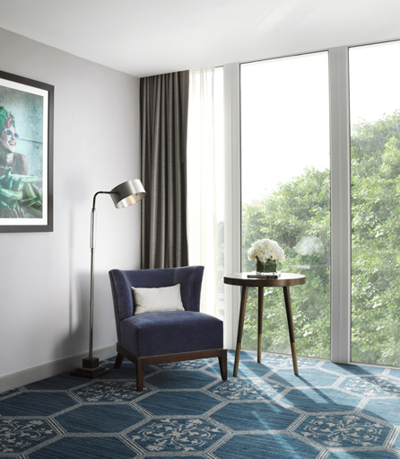 Τα 338 δωμάτια του ξενοδοχείου είναι σε ζεστούς τόνους και διακρίνονται για την εκλεπτυσμένη τους ατμόσφαιρα.