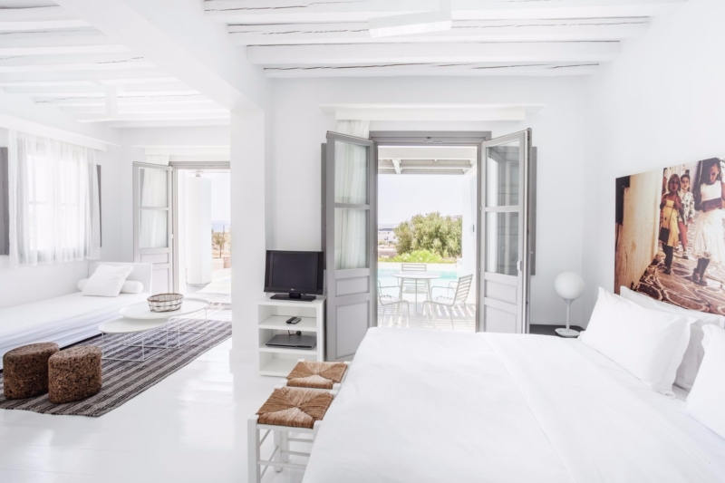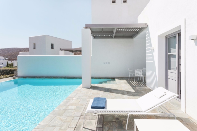 Τα δωμάτια και οι σουίτες έχουν σχεδιαστεί για να παρέχουν την αίσθηση ενός ιδιωτικού, άνετου και ζεστού τόπου κατοικίας. Βεράντα, πέργκολες και ιδιωτική πισίνα συμπληρώνουν το τοπίο, ενώ η σύγχρονη προσέγγιση στο σχεδιασμό και η φρέσκια διακόσμηση τονίζουν τη φιλοσοφία του αρχιτέκτονα.