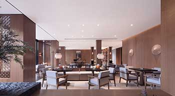 Το λόμπι σχεδιάστηκε όσο το δυνατόν πιο ανοικτό, με στήλες που πλαισιώνουν τις ξεχωριστές ημι-ανοικτές ζώνες. Εκτός αυτού, οι αυστηρές ξύλινες και κοίλες οθόνες εξασφαλίζουν φυσικό αερισμό. Κάθε λεπτομέρεια στο συνολικό χώρο δείχνει ένα μινιμαλιστικό στυλ design, λιτό αλλά όχι απλό.
