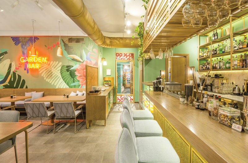 Στο ισόγειο επίπεδο έχει δημιουργηθεί το The Garden, ένα cocktail bar για ταξιδιώτες και ντόπιους, που είτε θέλουν να ξεκινήσουν την ημέρα τους με πρωϊνό, είτε αναζητούν μια ευχάριστη γωνιά στο κέντρο της πόλης για ένα ελαφρύ γεύμα ή ποτό.