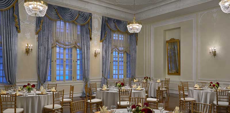 Το Crystal Ballroom μπορεί να φιλοξενήσει εκδηλώσεις για έως και 250 άτομα και χαρακτηρίζεται από λαμπρό -με γαλλικό αέρα- αρχιτεκτονικό ύφος, που θυμίζει αίθουσα της Marie Antoinette. Τα πανύψηλα παράθυρα, πλαισιώνονται με βελούδινες κουρτίνες και η γενικότερη διακόσμηση της αίθουσας διατηρεί τη γοητεία του 1930.