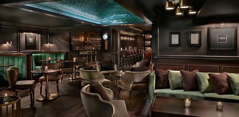 Επεξεργασμένα χάλκινα και νικελικά μεταλλικά έργα, επενδύσεις επίπλων από ξύλο καρυδιάς, στυλιζαρισμένα φωτιστικά, λαμπεροί μαρμάρινοι τείχοι και η οροφή από μαύρο γυαλί, που δημιουργεί την ψευδαίσθηση του ατελείωτου χώρου, δημιουργούν μία σαγηνευτική ατμόσφαιρα, που αιχμαλωτίζει τον επισκέπτη.