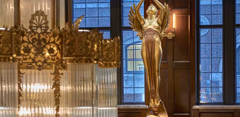 Όλα αυτά τα στοιχεία διατηρήθηκαν κατά την ανακαίνιση, όπως και το επιχρυσωμένο άγαλμα της Αυγής, που είναι και γνωστή ως η θεότητας της φιλοξενίας.