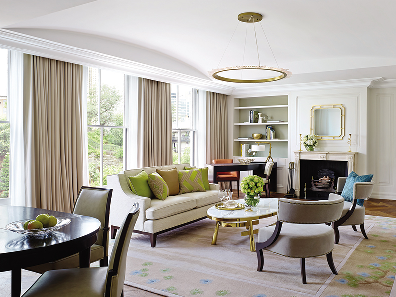 Οι κοινόχρηστοι χώροι του ξενοδοχείου άλλαξαν τελείως, όμως συνεχίζουν να αποπνέουν την ίδια ζεστασιά, καλωσορίζοντας σε κάθε βήμα τον επισκέπτη. Το design – από τη reception, σε χρυσό και λευκό, μέχρι τους χώρους εστίασης, σε παλ αποχρώσεις – αποπνέει έναν αέρα μοναδικής κομψότητας. Πλούσια υλικά συνδυάζονται με κομψά στοιχεία, για να ντύσουν μοναδικούς και ταυτόχρονα διαχρονικούς χώρους φιλοξενίας. Στους κοινόχρηστους χώρους βρίσκονται έργα τέχνης επώνυμων Αυστραλών καλλιτεχνών, ενώ 6 μοναδικά διακοσμημένα μαρμάρινα τζάκια σε διαφορετικούς χώρους, αποτελούν ένδειξη του βαθμού στο οποίο δόθηκε προσοχή στην λεπτομέρεια.