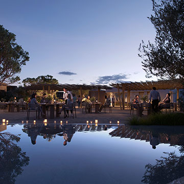 Το «Slow Living Resort» είναι απαλό, προσαρμόζεται στο φυσικό ανάγλυφο, κάπου υποχωρεί σημειακά, και ταυτόχρονα δηλώνει  την παρουσία του.  «Απ’ άκρη σ’ άκρη του χώρου, σε ένα συνεχές, βιωματικό παρόν υπάρχει ο άνθρωπος».