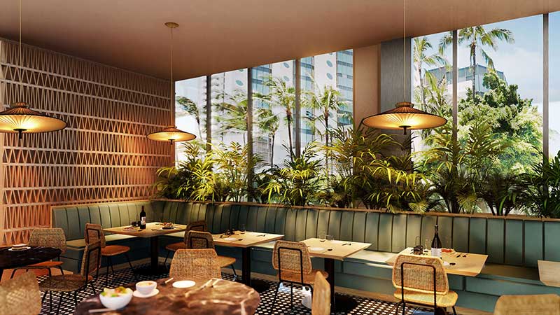 Το νέο ξενοδοχείο αποτελεί μία “urban” όαση στο νησί Oahu και διαθέτει 251 δωμάτια, το design των οποίων αποτελεί μία μείξη του μοντερνισμού των μέσων του αιώνα και της χαβανέζικης παράδοσης, με στοιχεία από την μεταπολική αρχιτεκτονική, που σχημάτισε τη σημερινή Χονολουλού.